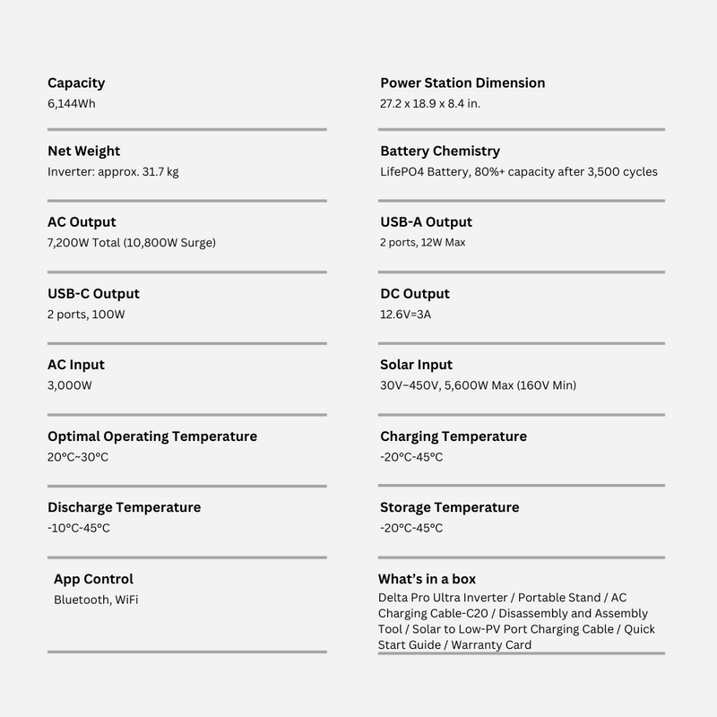 The EcoFlow DELTA Pro Ultra is a powerful and expandable home backup system that starts with 6kWh of storage and can grow up to 30kWh enough to keep your whole home running during long outages or even go off-grid. Each unit delivers up to 7.2kW of power (10.8kW surge)ideal for running heavy appliances like air conditioners, water heaters, and more. It switches to backup power in milliseconds, so there’s no interruption during blackouts.