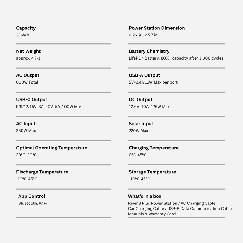 Equipped with versatile charging options—including USB, AC, and DC ports—and capable of solar input up to 220W, the RIVER 3 Plus adapts to your lifestyle, whether you're off-grid or at home. Its 1-hour fast charging gets you up to 80% power quickly without harming battery health, while its quiet, compact build ensures you can take it anywhere with ease. Expandable, efficient, and ultra-reliable, it’s the portable power solution for all your essential devices.