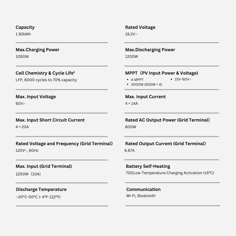 The STREAM Ultra is a powerful yet compact plug-in solar battery built to help you make the most of your home’s solar energy. It’s equipped with a 1.92kWh LiFePO₄ battery that delivers over 6,000 charge cycles, ensuring long-lasting performance and safety compared to traditional lithium-ion batteries. With its 2,000W solar input capacity (4 MPPTs × 500W each), the STREAM Ultra efficiently captures and stores energy from larger rooftop systems, making it perfect for households that value both power and reliability.